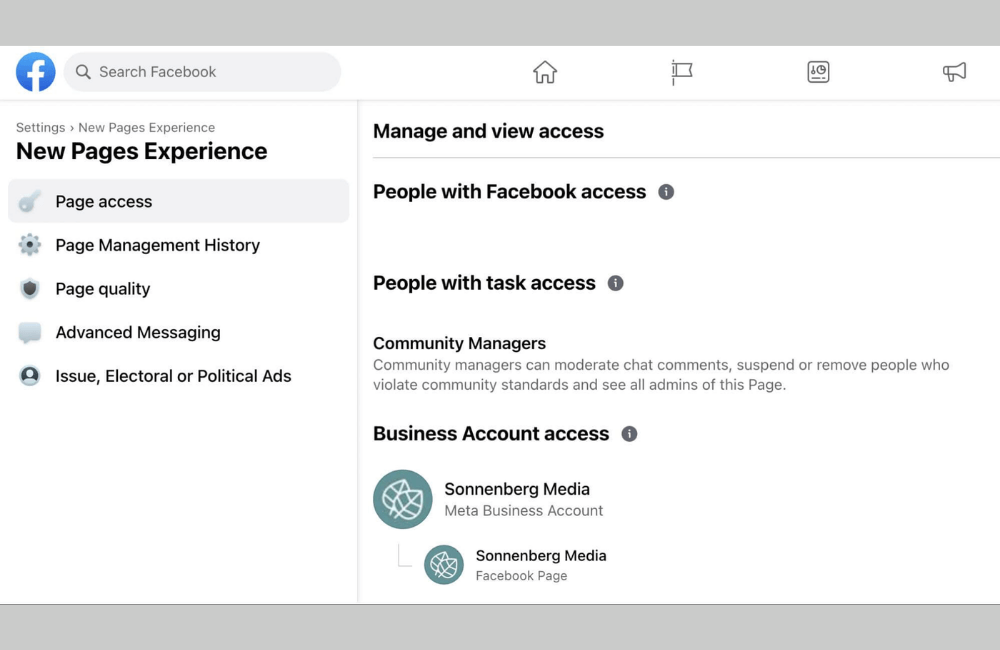- Truy cập đầy đủ: Người được cấp quyền này có thể thêm hoặc xóa người khác, quản lý quảng cáo, tin nhắn, nội dung, cộng đồng, quyền và cài đặt. Nói cách khác, họ gần như có toàn quyền với Trang, kể cả xóa Trang.